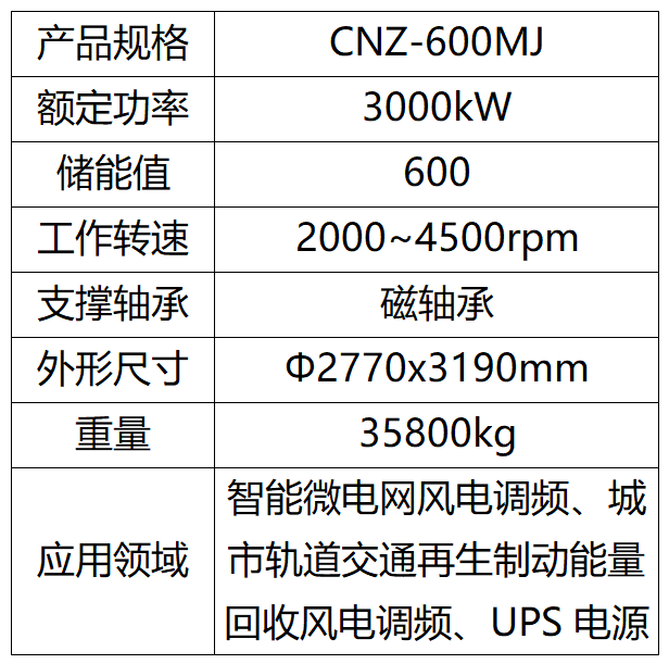 飛輪儲能系統是利用旋轉體旋轉動能存儲和釋放電能,通過同軸電動/發電機實現動能與電能轉換,電機電動運行使飛輪轉子升速存能,發電運行使轉子降速釋能,升速降速由控制單元控制。它優勢明顯,儲能密度高、瞬時功率大,短時間能輸出更大能量,利于設備快速響應;壽命周期長,可頻繁充放電且性能無衰減,系統循環壽命極長, 設計壽命達30年;環境友好,無化學物質釋放、化學爆炸等安全隱患;能量轉換效率高, 電能與動能轉換效率高于88%,儲能系統綜合效率超過86%;可靠性高、免維護,運行穩定,采用電磁軸承無機械磨損,基本可免維護。該系統適用于微電網、軌道交通、新能源電站、敏感負載等場景,能為電力系統提供調壓調頻、暫態支撐、緊急備用電源等輔助服務。